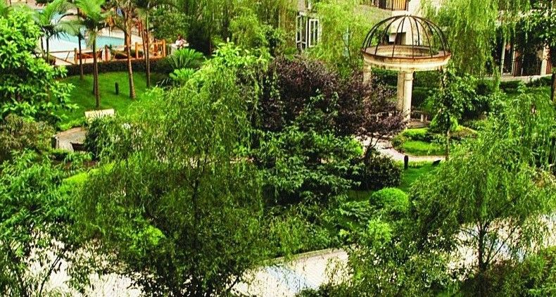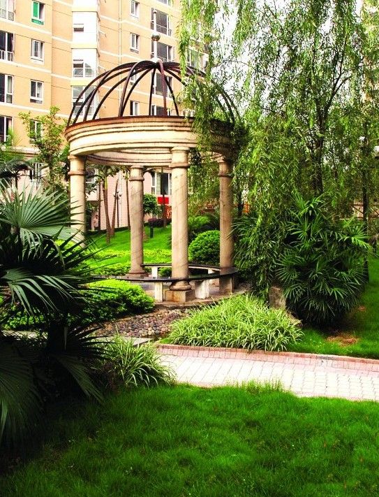 现代罗马风格景亭与中式植物群落的交融别有情趣
