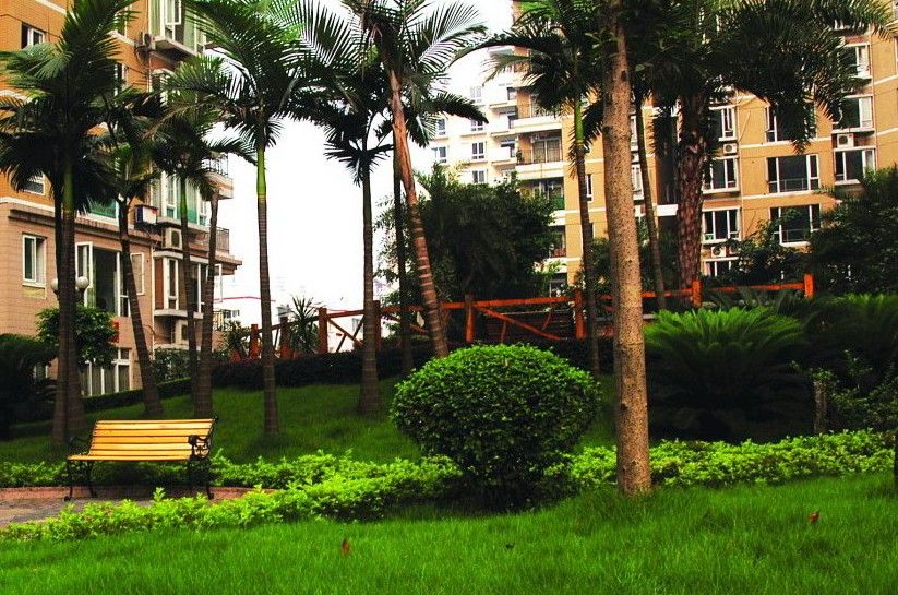 高大的棕榈乔木与灌木及地被形成的独特围合空间